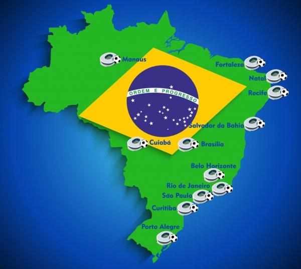 Карту стадиона Бразилии. Стадион карта Бразилии (Южная Америка - Америка) для печати. Стадион карта Бразилии (Южная Америка - Америка) скачать. Бразильские стадионы получили обширный задел к чемпионату мира 2014 года. Массивные бетонные колоссы прошлого были заменены новым набором гигантов, и большинство ведущих клубов Бразилии теперь играют на современных аренах, как это показано на карте стадионов Бразилии. К сожалению, из-за высоких цен на билеты и проблем с толпой бразильские стадионы до сих пор не заполняются, хотя в нужный день ничто не может сравниться с игрой на классической площадке, такой как Маракана или Морумби.
